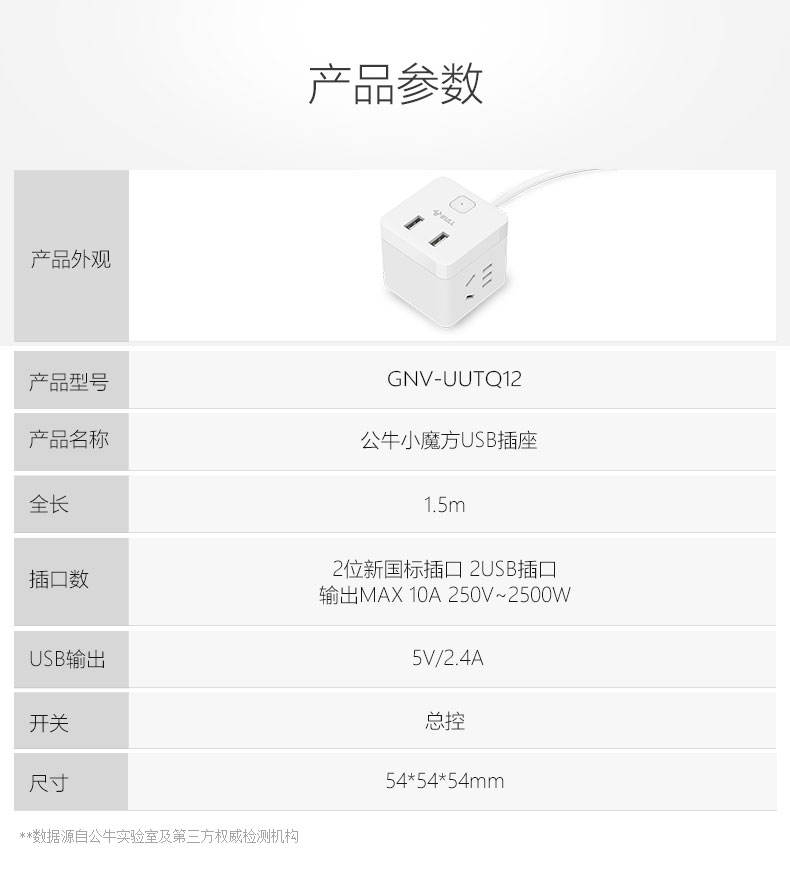 商品名称:BULL/公牛 小魔方USB插座 1.5m GNV-UUTQ12
