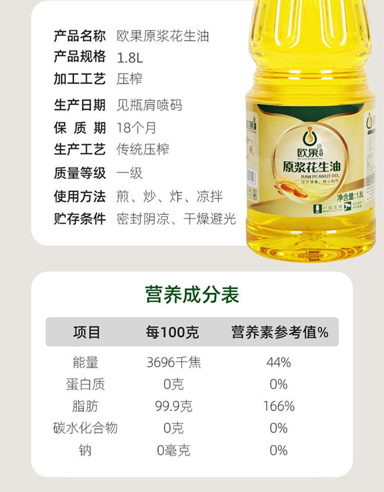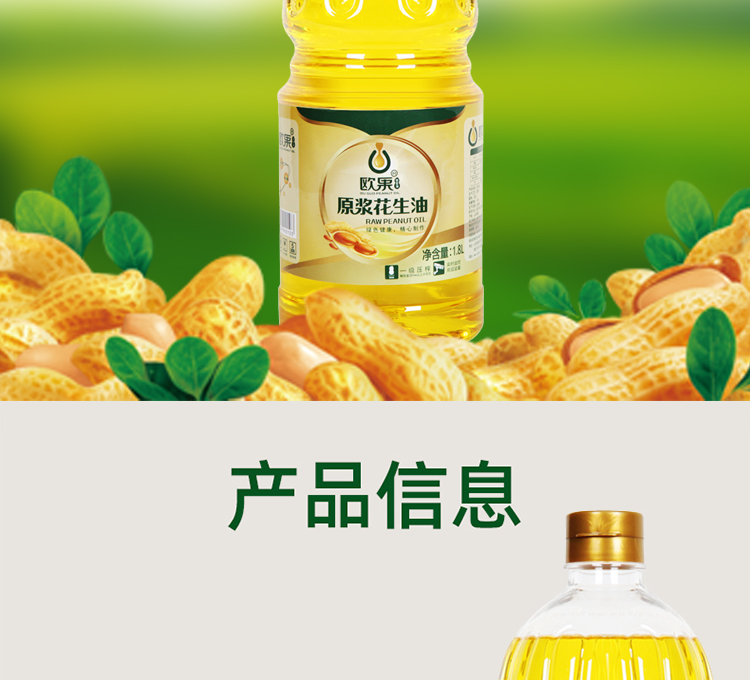 商品名称:欧果花生油原浆一级物理压榨花生油1.8L*2桶