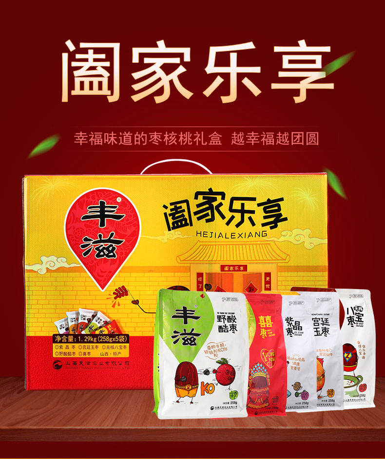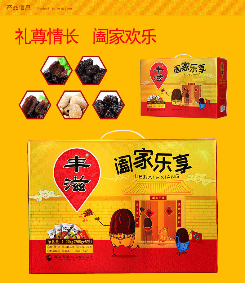 商品名称:丰滋阖家乐享枣礼盒1290g