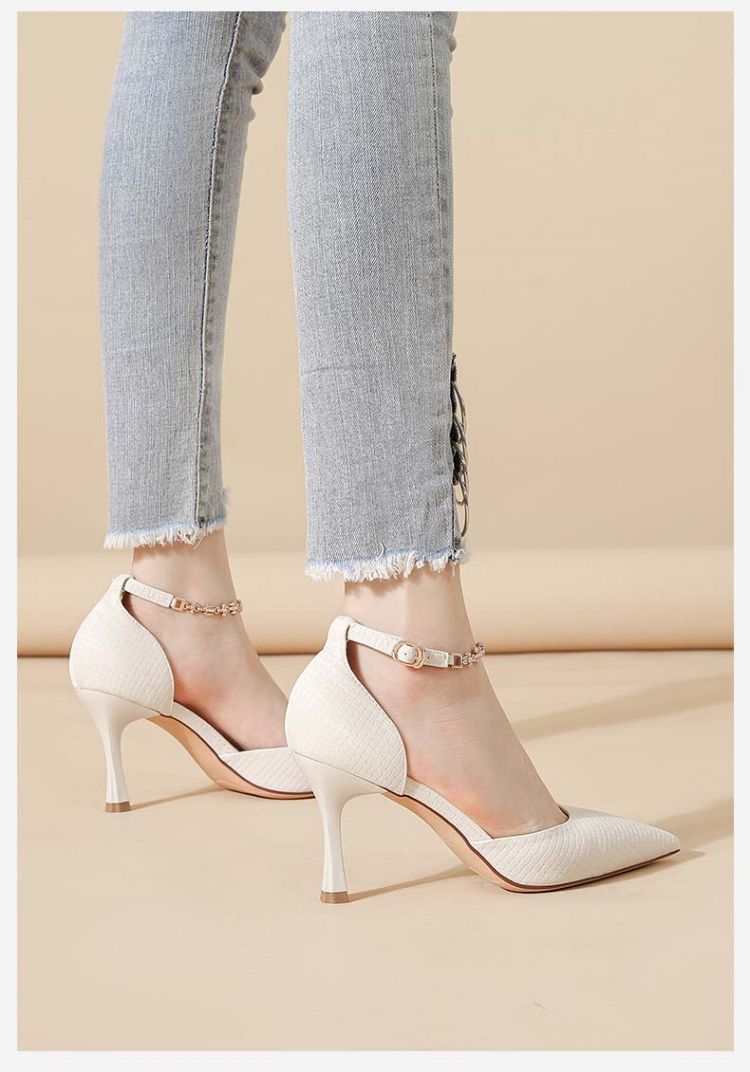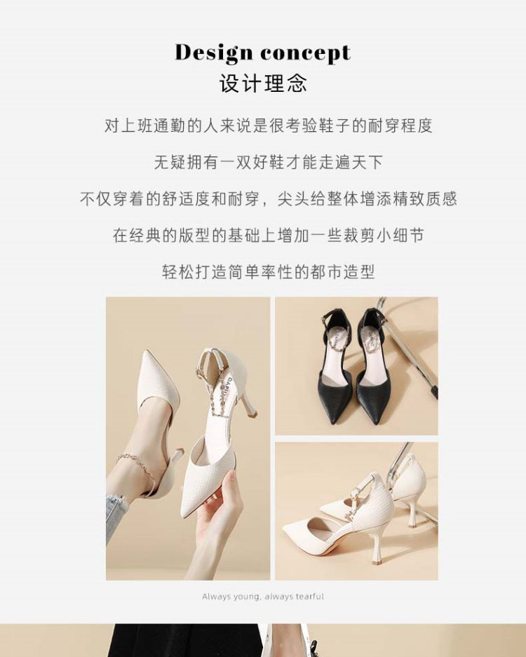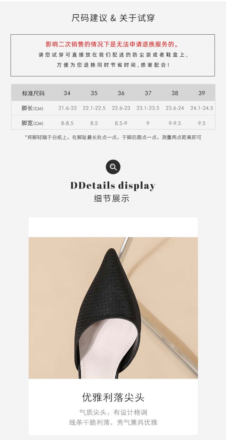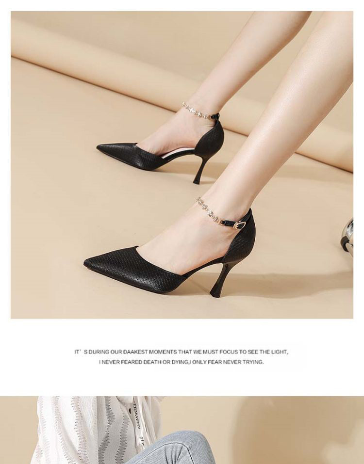 商品名称:【热卖爆款】夏季高跟鞋时尚简约一字带中空凉鞋尖头细跟女单鞋 607575