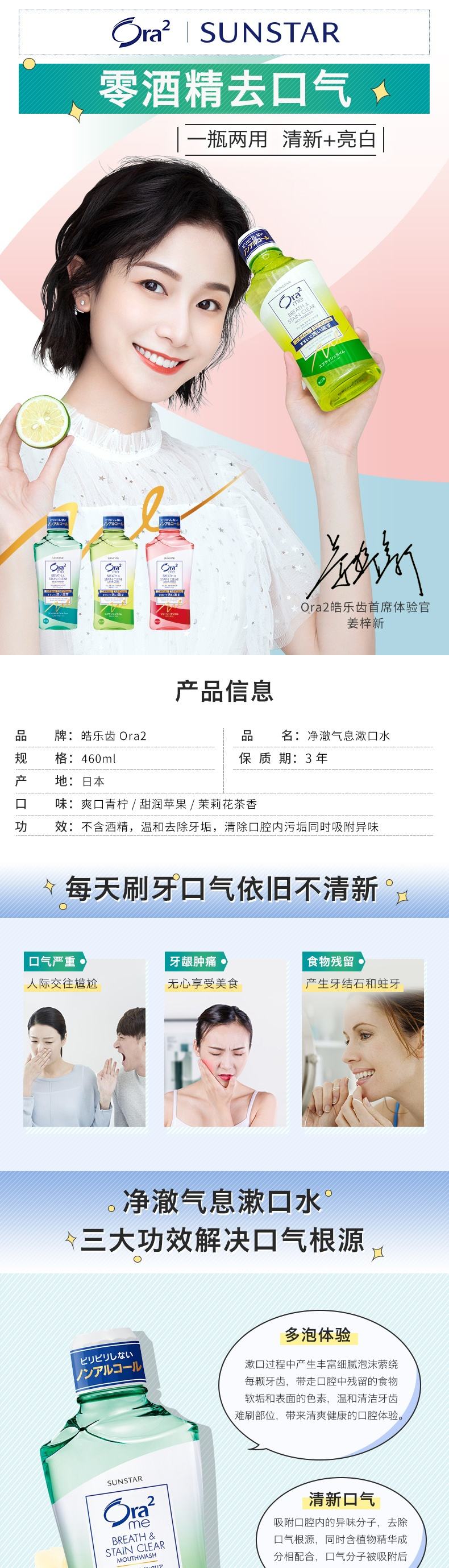 商品名称:Ora2/皓乐齿净澈气息漱口水组合装-茉莉花茶香味460ml*3瓶