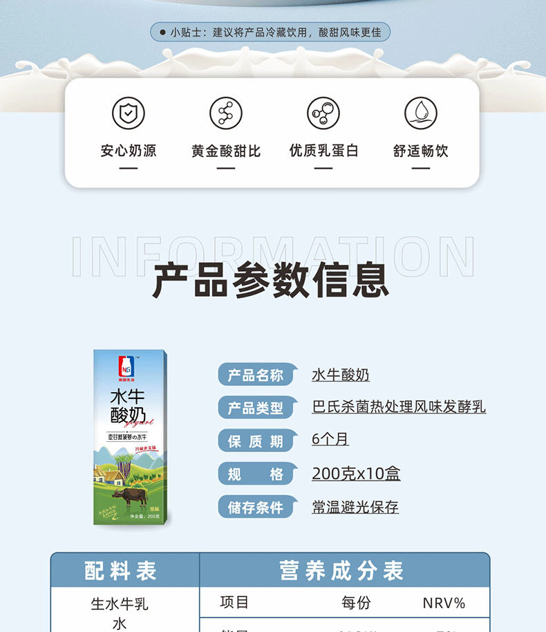 商品名称:乳鹰原味水牛酸奶整箱200g*10盒