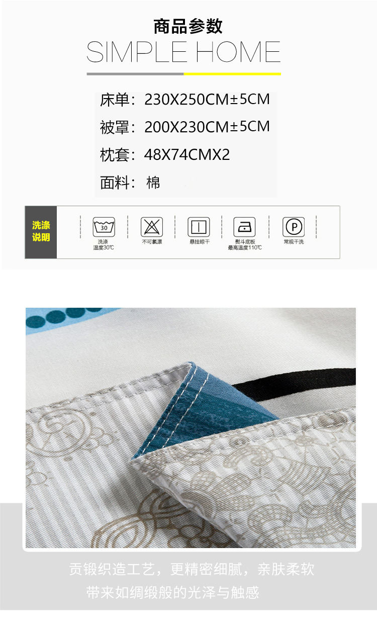 商品名称:PLOVER/啄木鸟北美风情纯棉床品四件套200*230cm