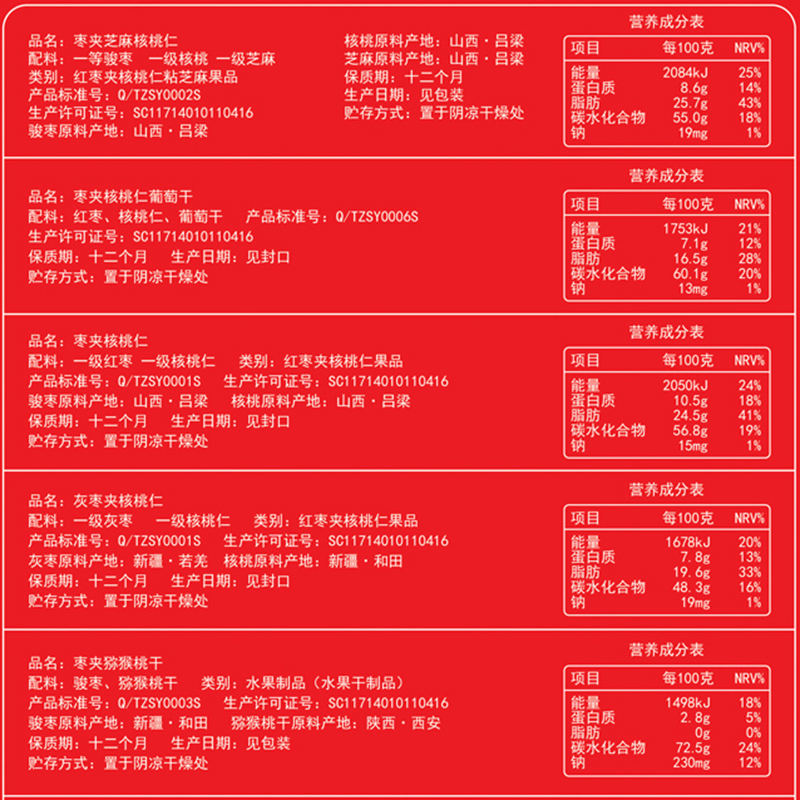 商品名称:丰滋五福临门枣夹核桃果仁418g