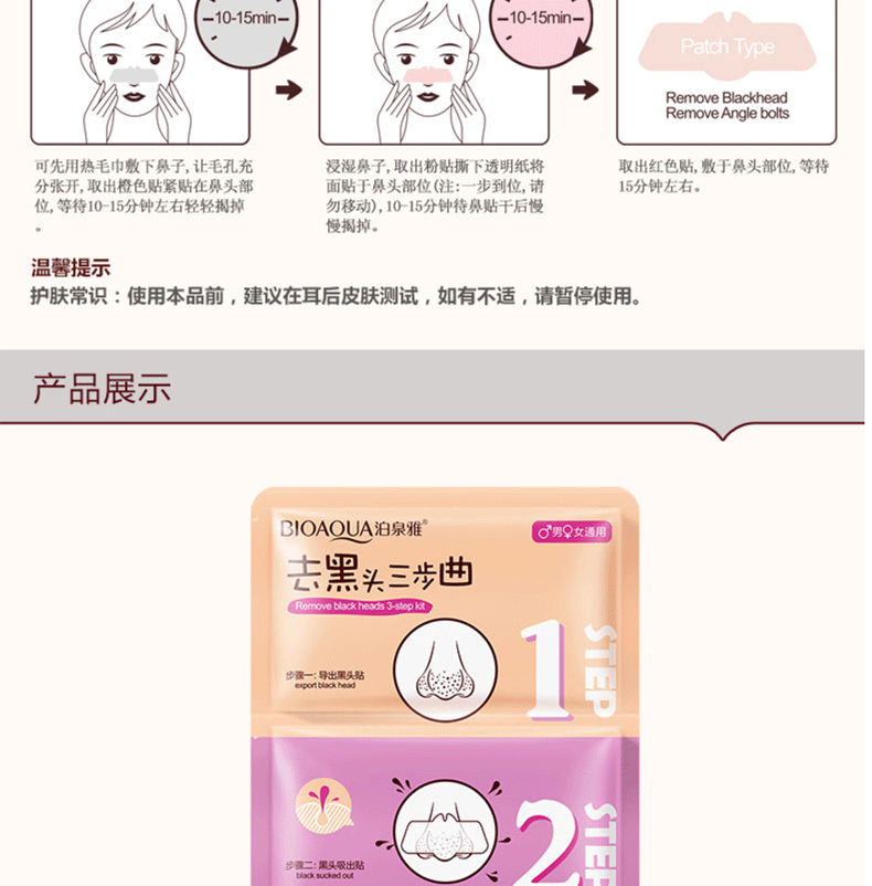 商品名称:泊泉雅去黑头收缩毛孔三步曲鼻膜鼻贴(红色包装) 21ml/片 5片/10片