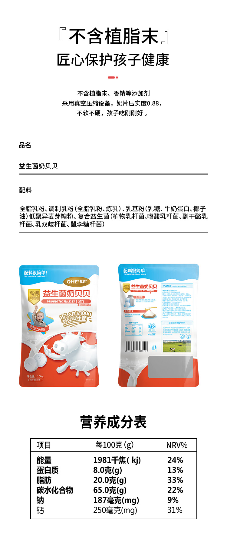 商品名称:小奶花QHE+其嘉益生菌奶贝贝100g*5袋