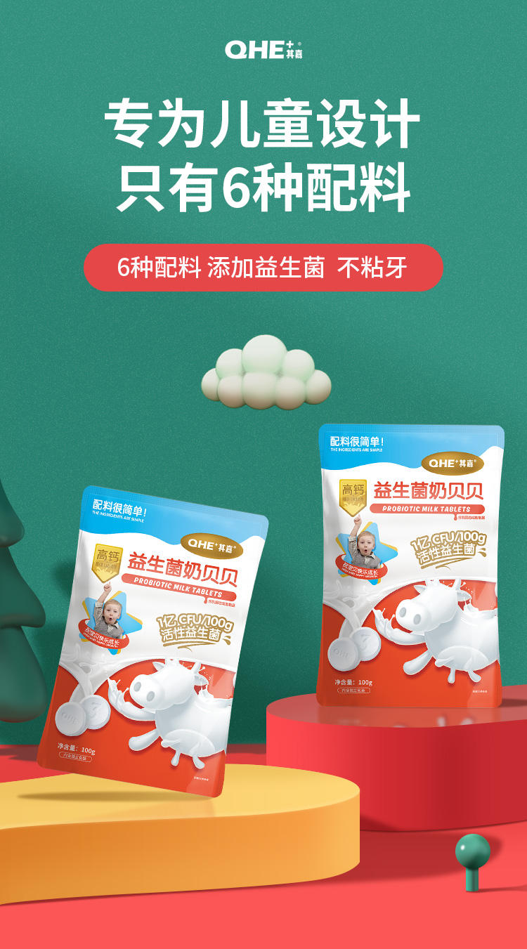 小奶花QHE+其嘉益生菌奶贝贝100g*5袋