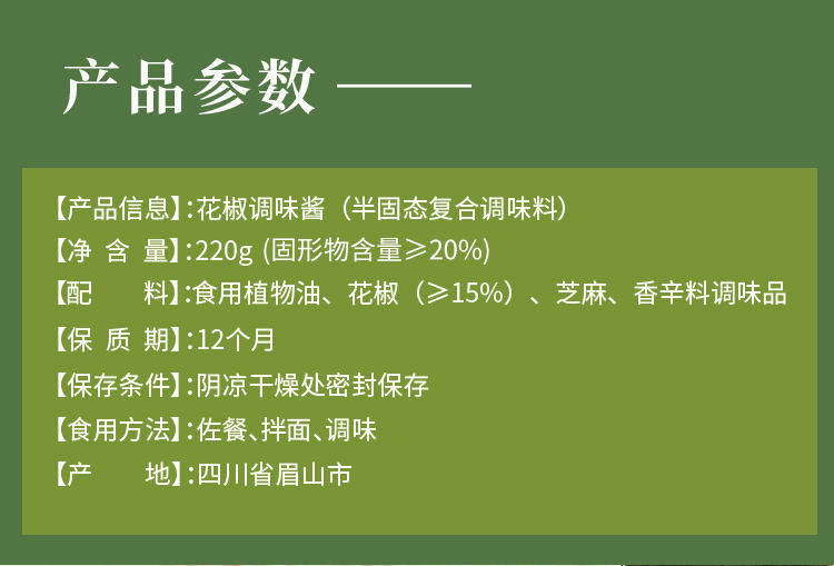 商品名称:川娃子青花椒酱220g*3瓶