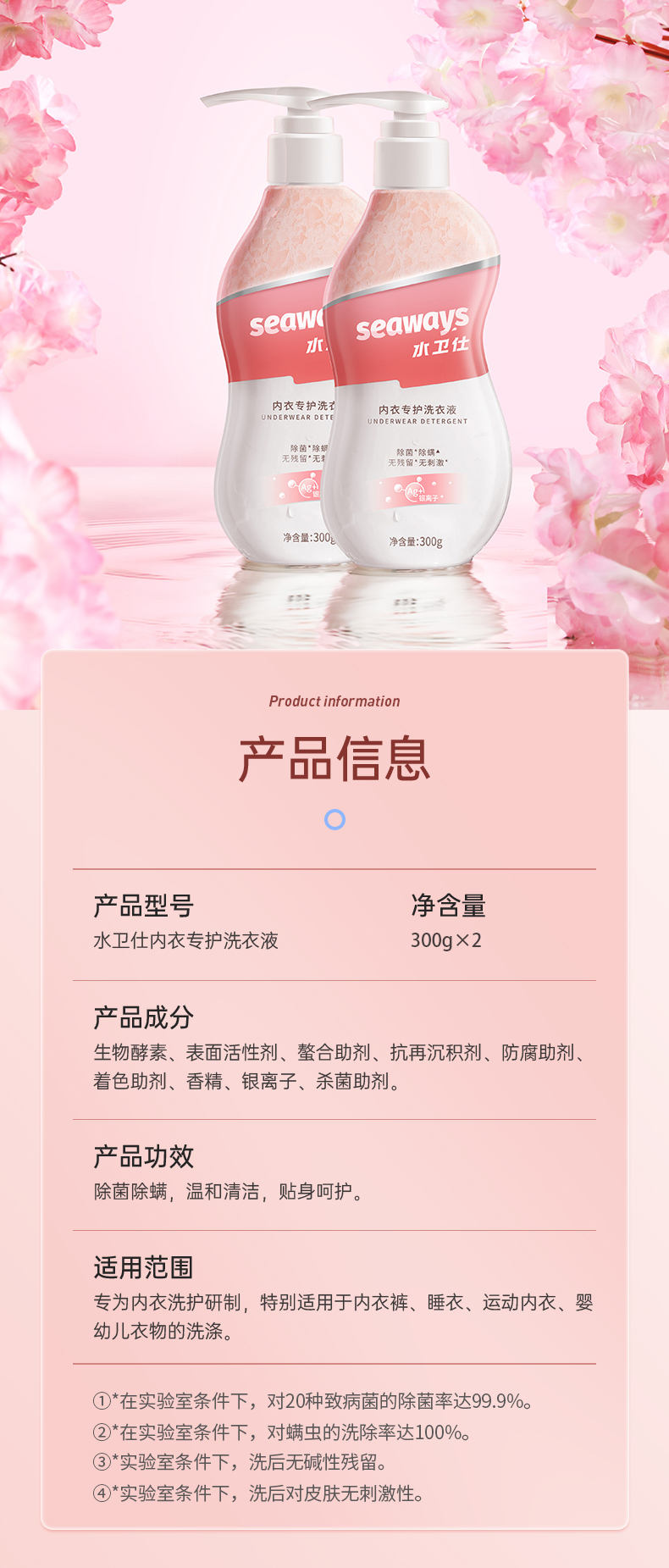 商品名称:seaways/水卫仕内衣专户洗衣液300g*2瓶