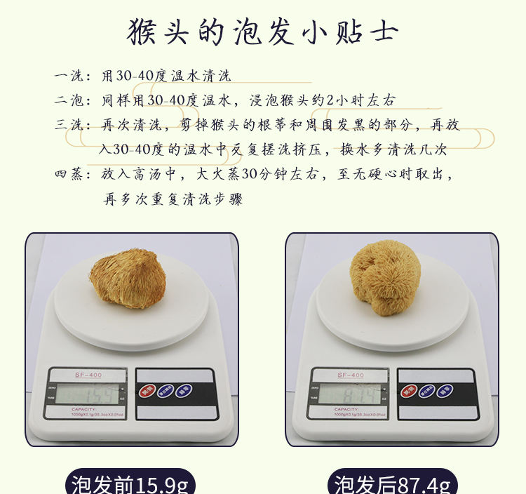 产品规格:天锦有机猴头蘑纸袋装100g*2袋
