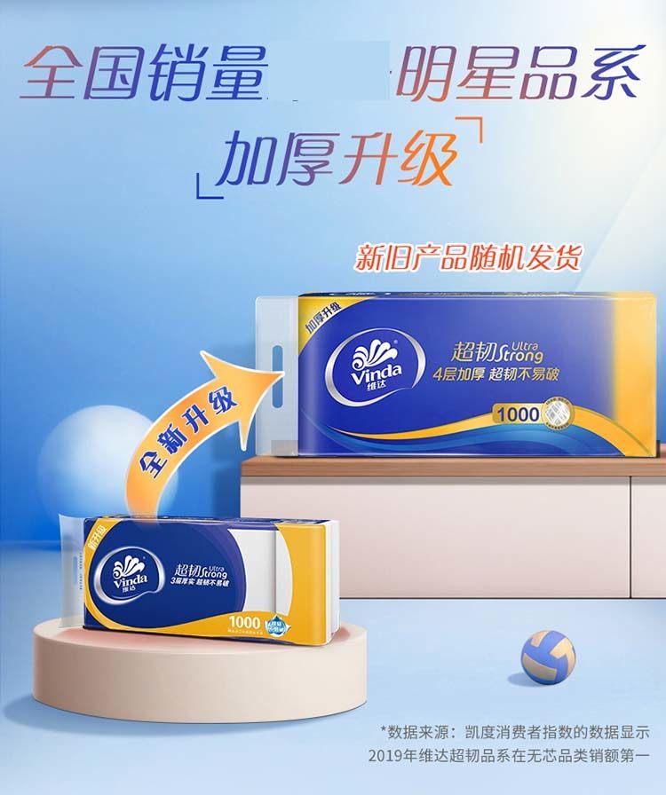 商品名称:Vinda/维达超韧4层无芯卷纸100克10卷*4提