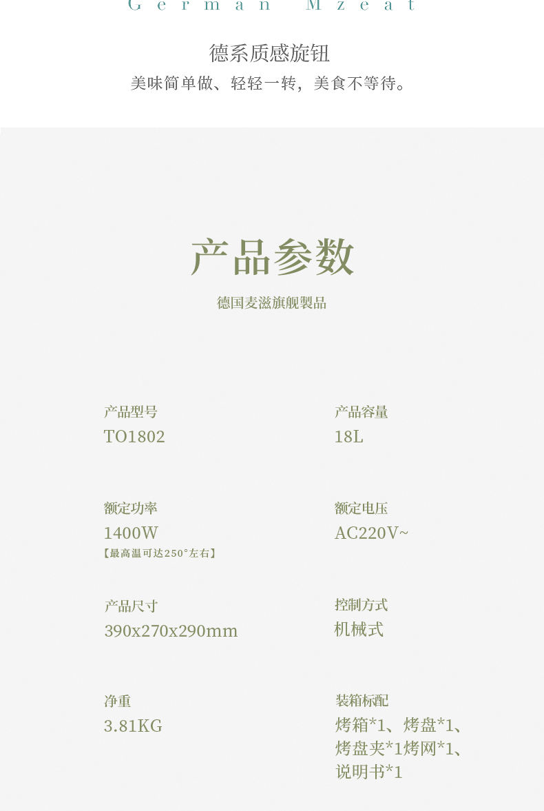 商品名称:Mzeat/麦滋18升电烤箱TO1802