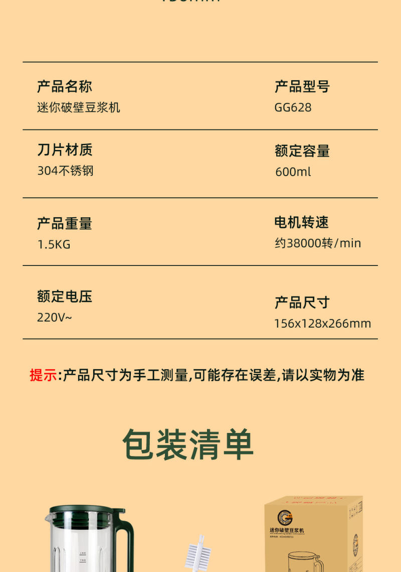 商品名称:GUGE/德国谷格600毫升迷你破壁豆浆机GG628