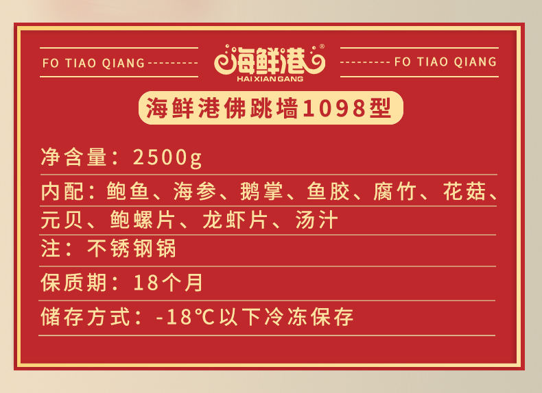 商品名称:海鲜港聚宝盆大盆菜佛跳墙1098型2500g