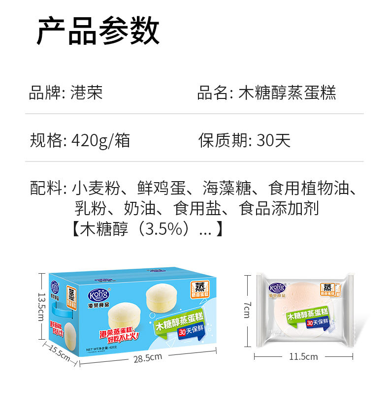 商品名称:KONG WENG/港荣木糖醇蒸蛋糕420g*2箱