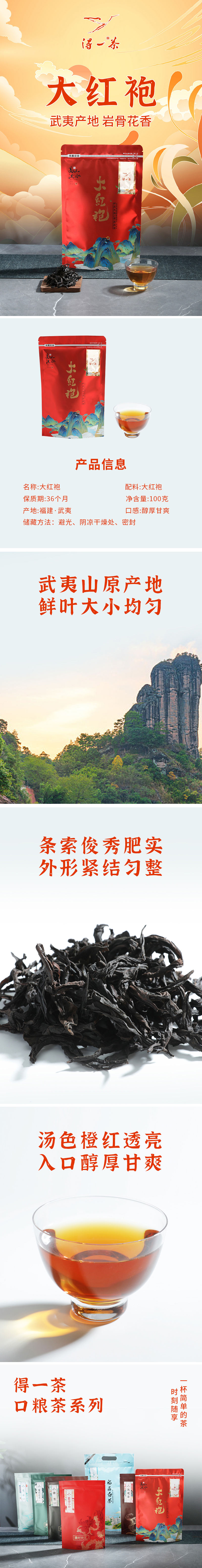 商品名称:得一茶武夷大红袍袋装100g