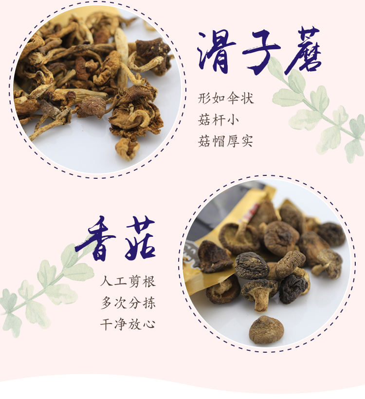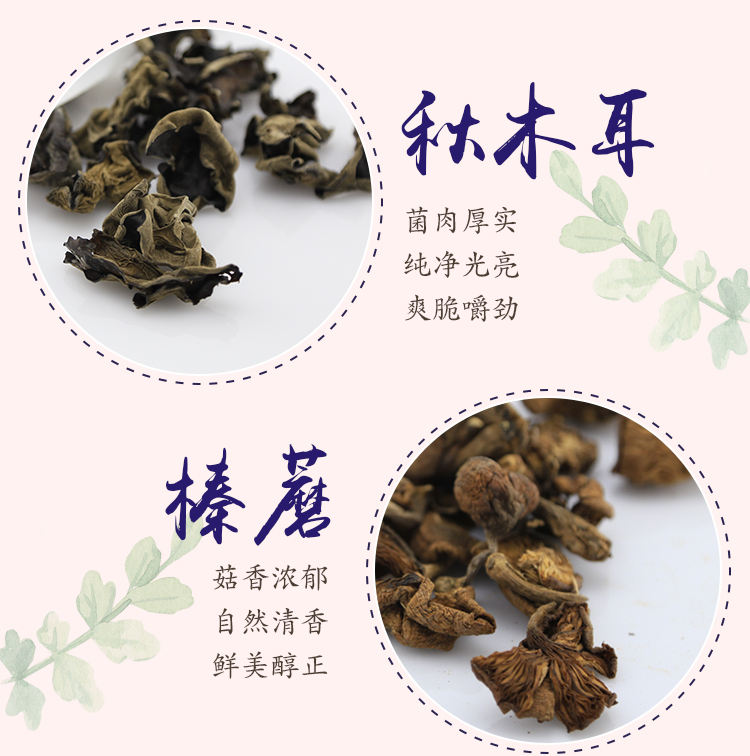 内含:秋木耳50g*1,榛蘑50g*1,滑子蘑50g*1,香菇50g*1
