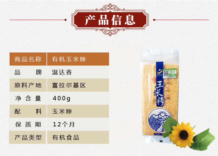 商品名称:温达香有机玉米糁400g*5袋