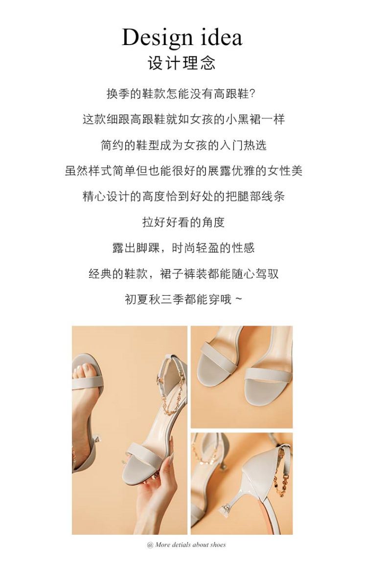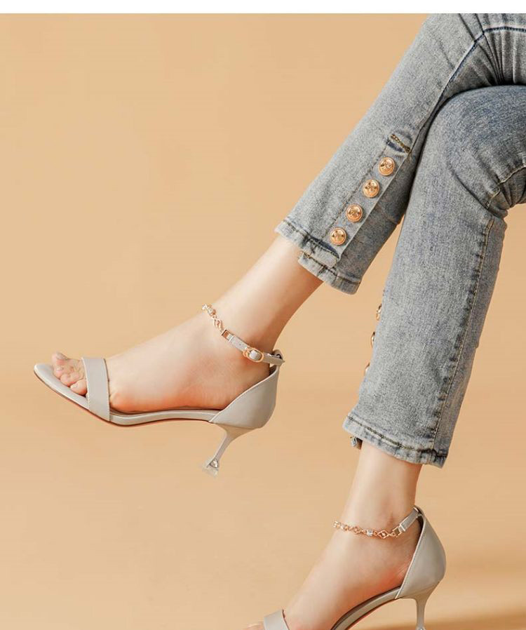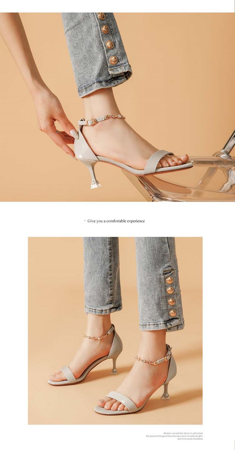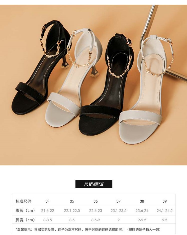 商品名称:夏季女凉鞋气质时尚百搭女士中空凉鞋一字带脚链凉鞋高跟鞋 037527