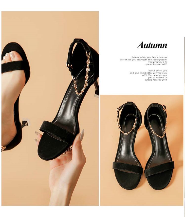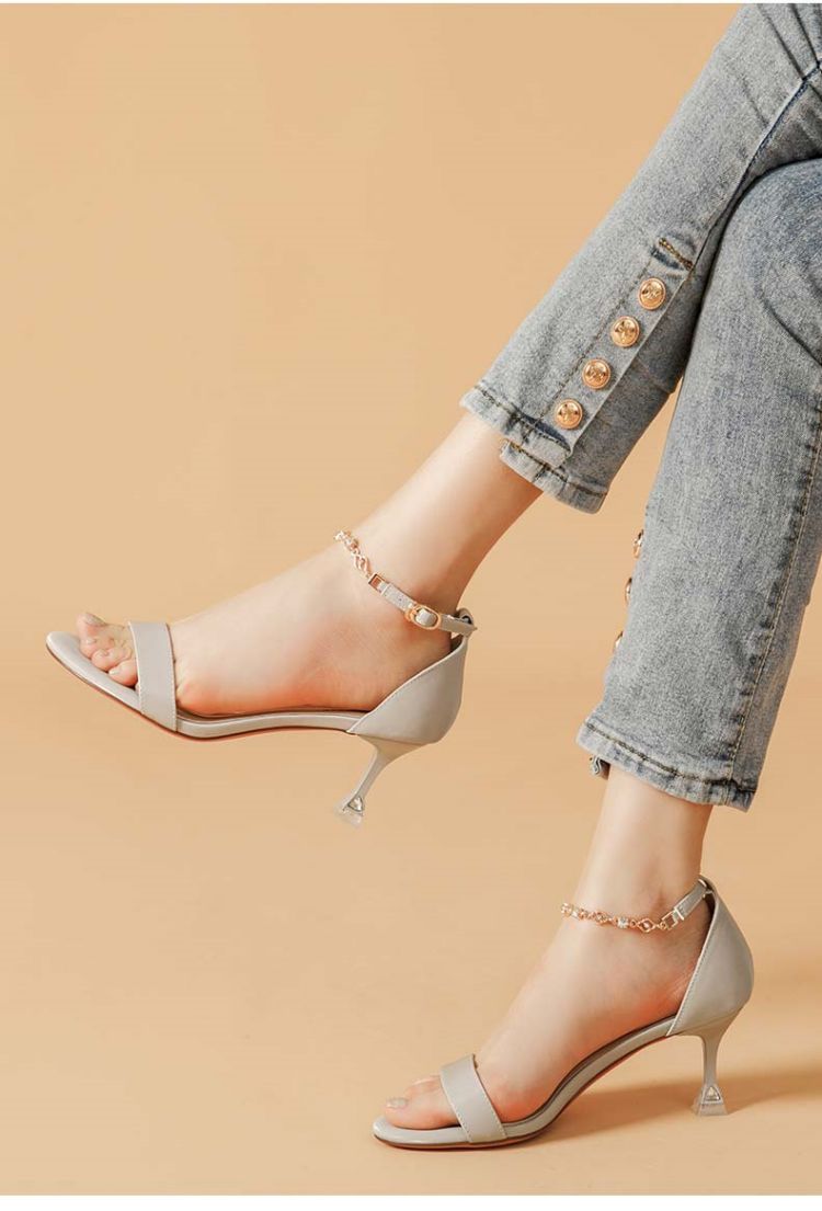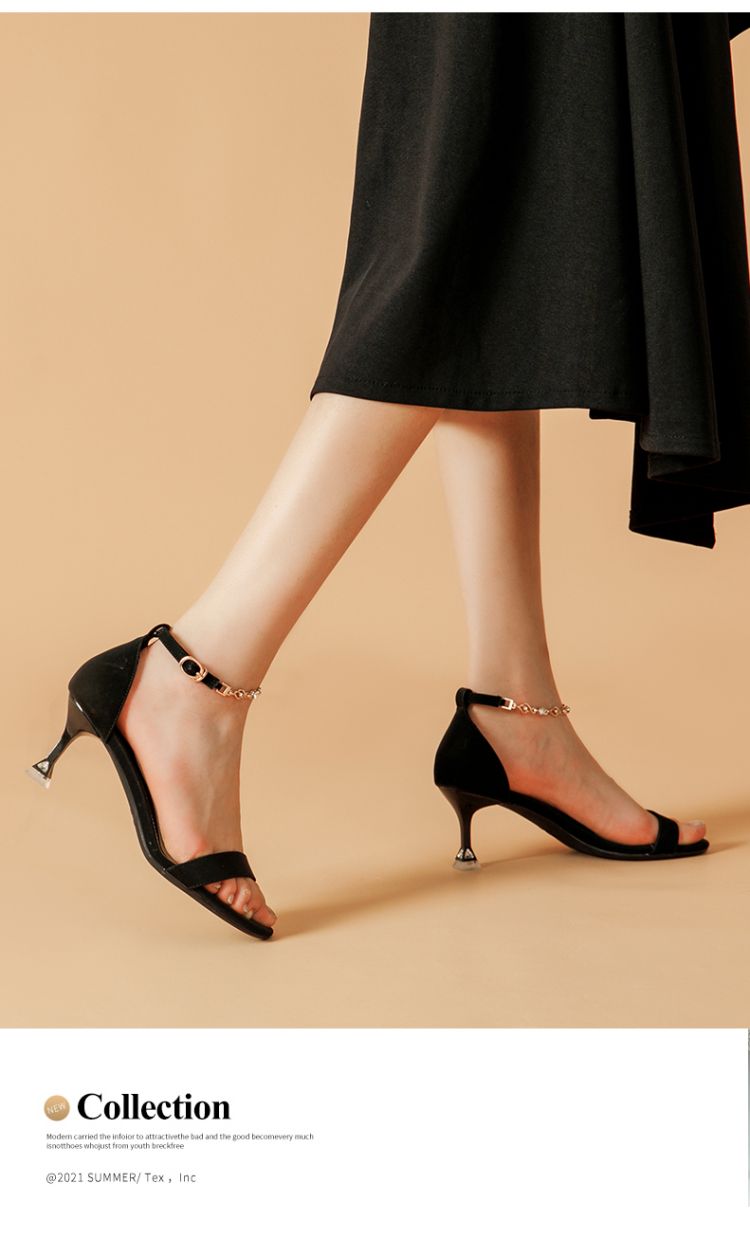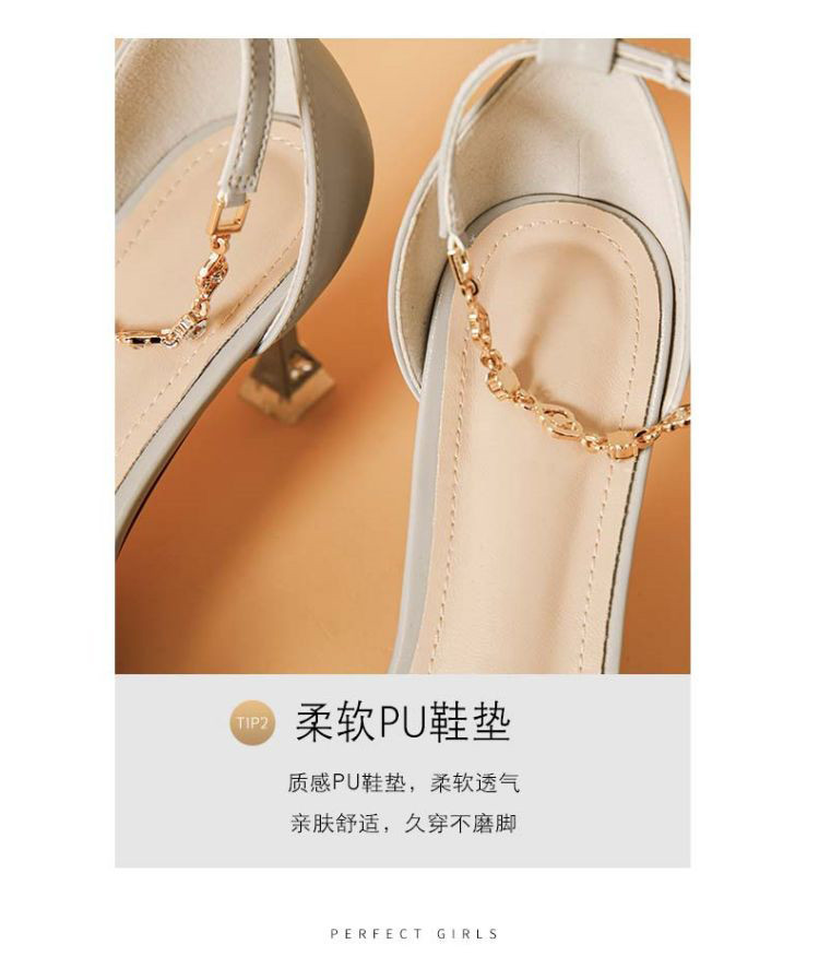 商品名称:夏季女凉鞋气质时尚百搭女士中空凉鞋一字带脚链凉鞋高跟鞋 037527