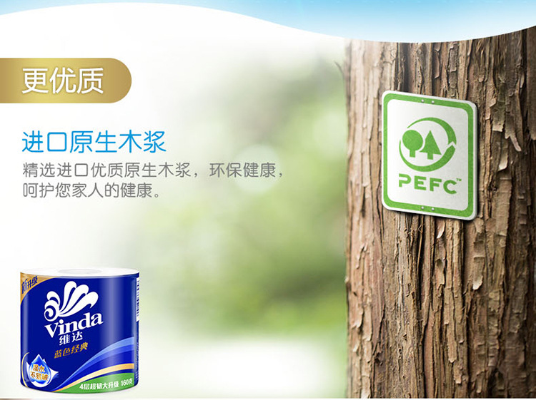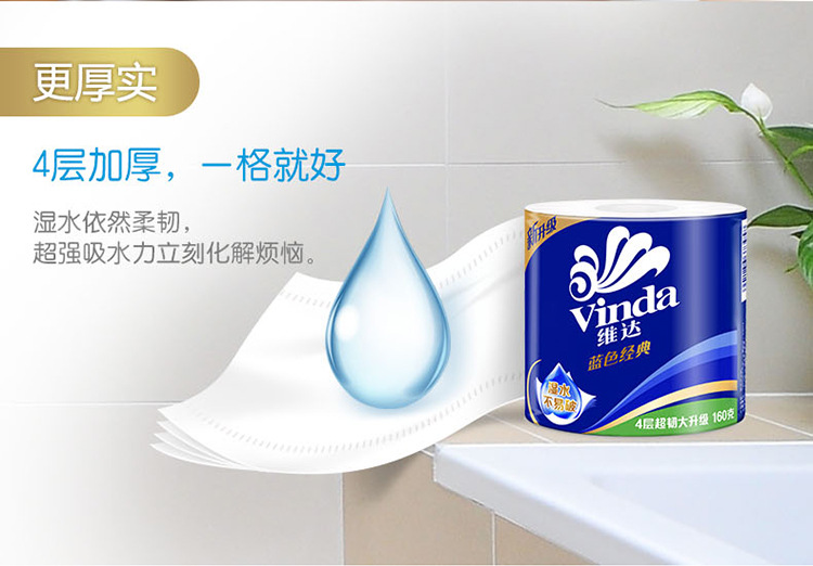 Vinda/维达蓝色经典四层超韧有芯卷纸160克10卷*2提