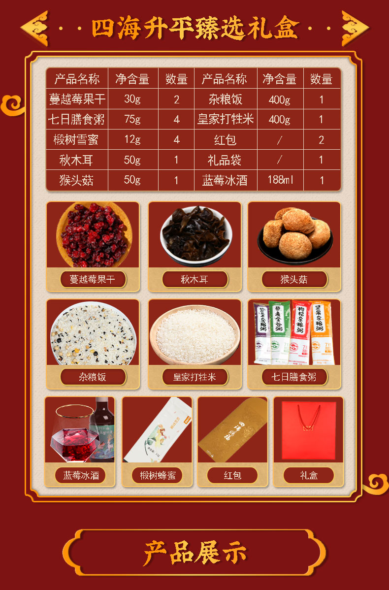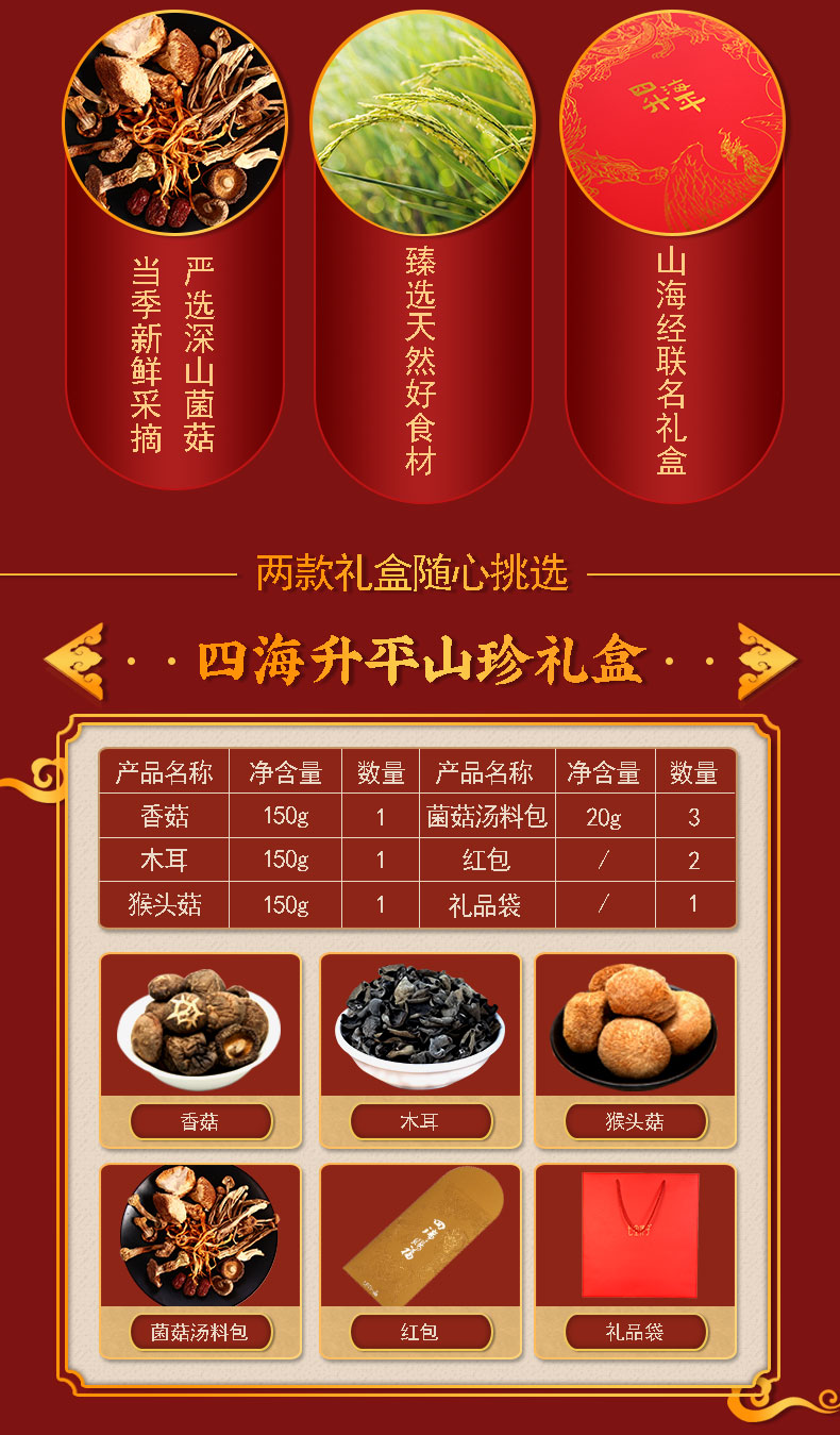 商品名称:七里浮子/山海经四海升平山珍礼盒510g