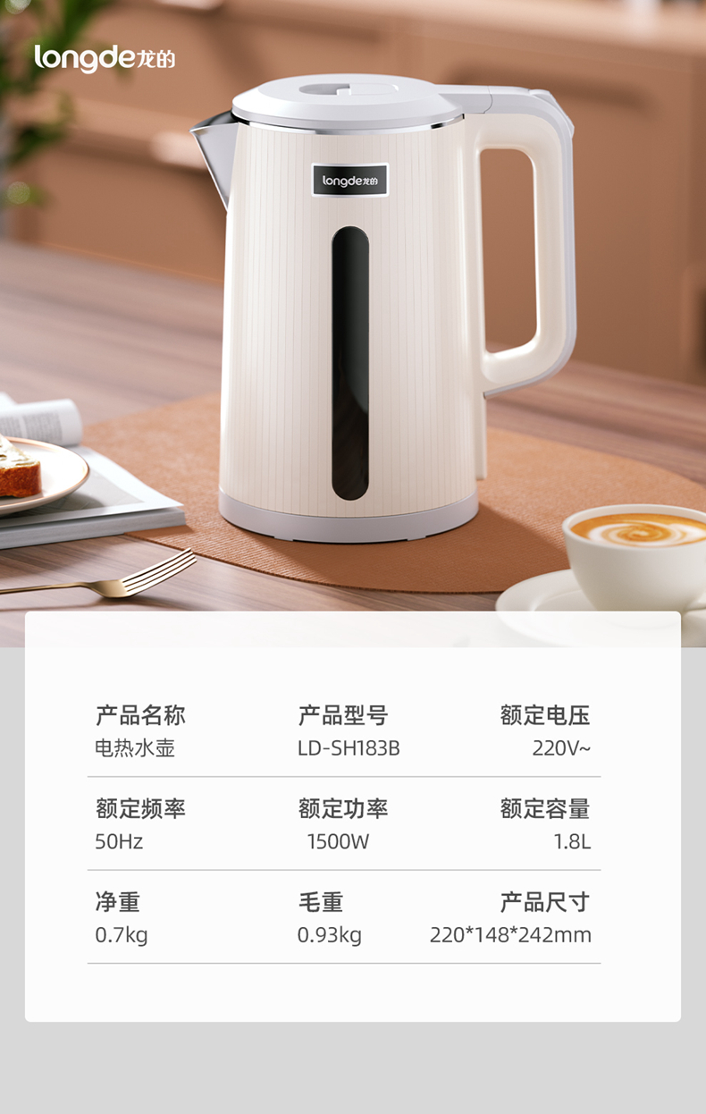 商品名称:Longde/龙的1.8升电热水壶LD-SH183B