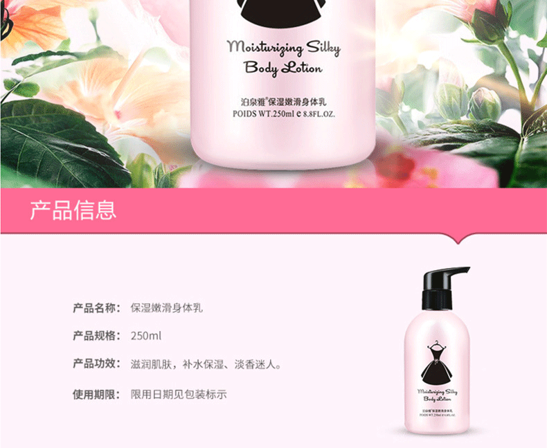 商品名称:泊泉雅 保湿嫩滑身体乳 水润保湿 身体护理 250ml