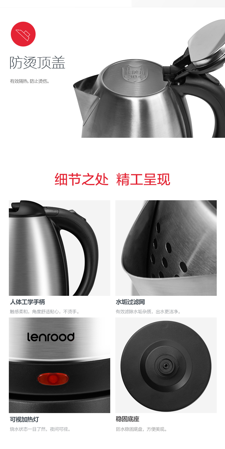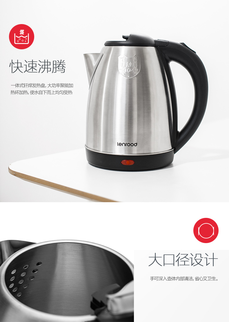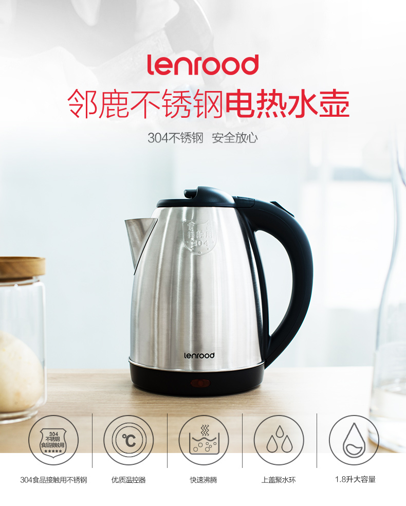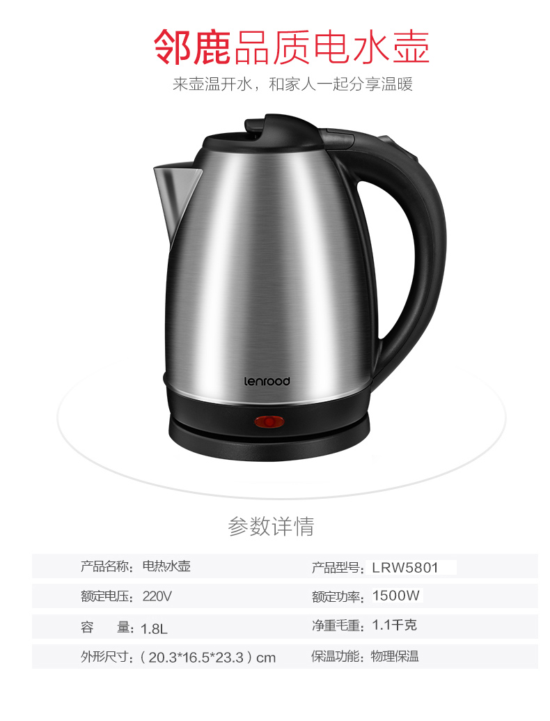 商品名称:LENROOD/邻鹿1.8升电热水壶-不锈钢色LRW5801