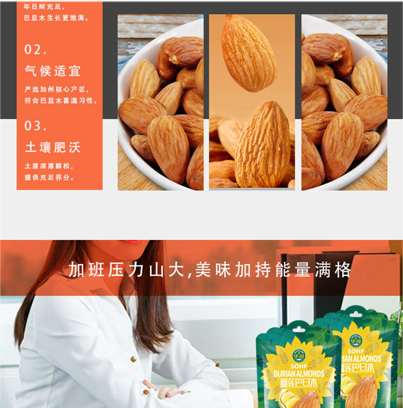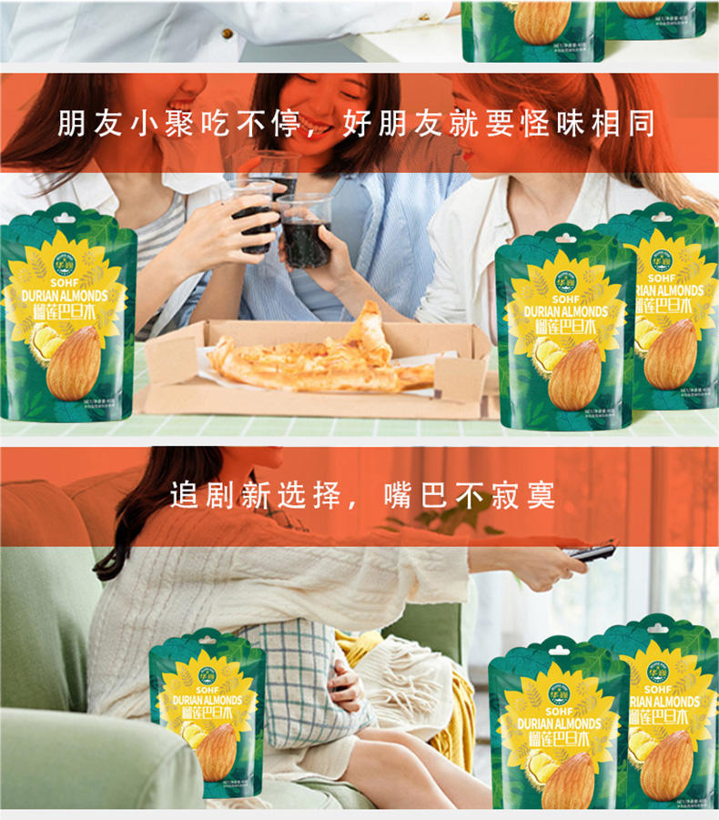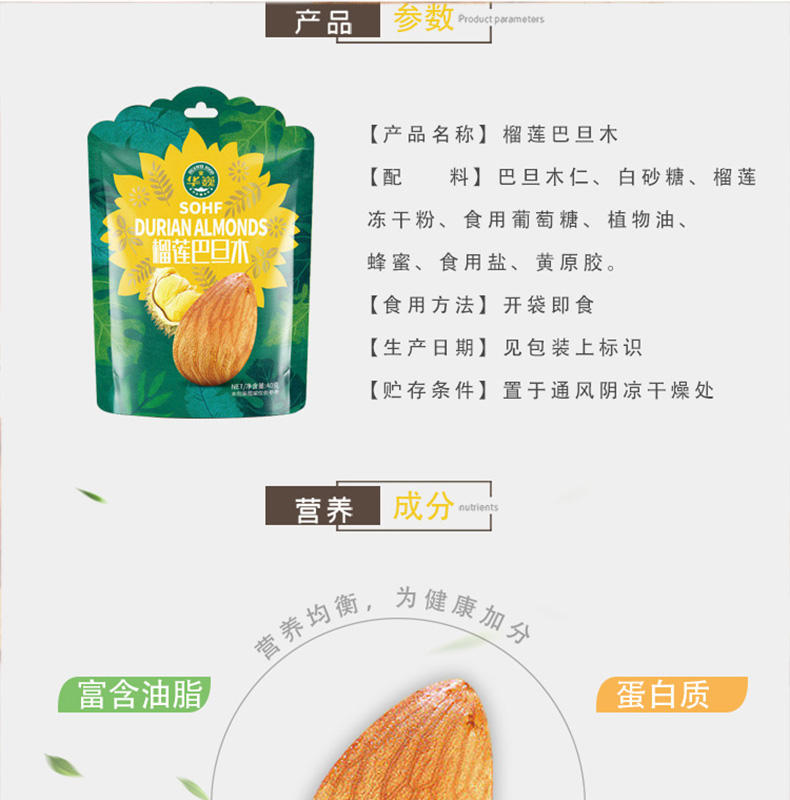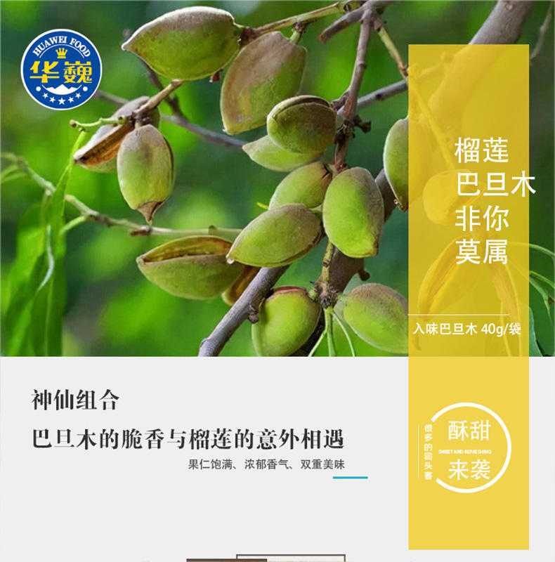 商品名称:HUAWEI FOOD/华巍榴莲巴旦木40g*6袋
