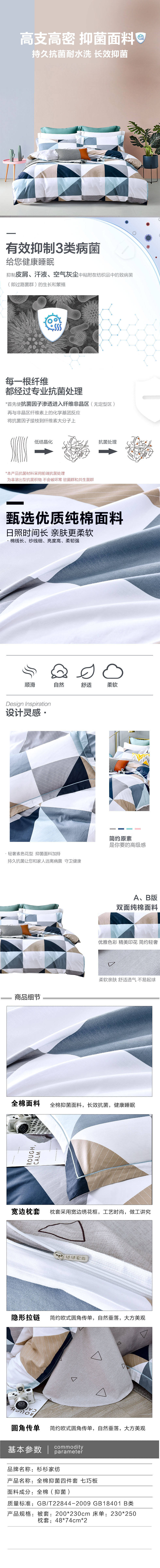 商品名称:【德邦配送】FIRS/杉杉家纺七巧板全棉抑菌床品四件套200*230cm