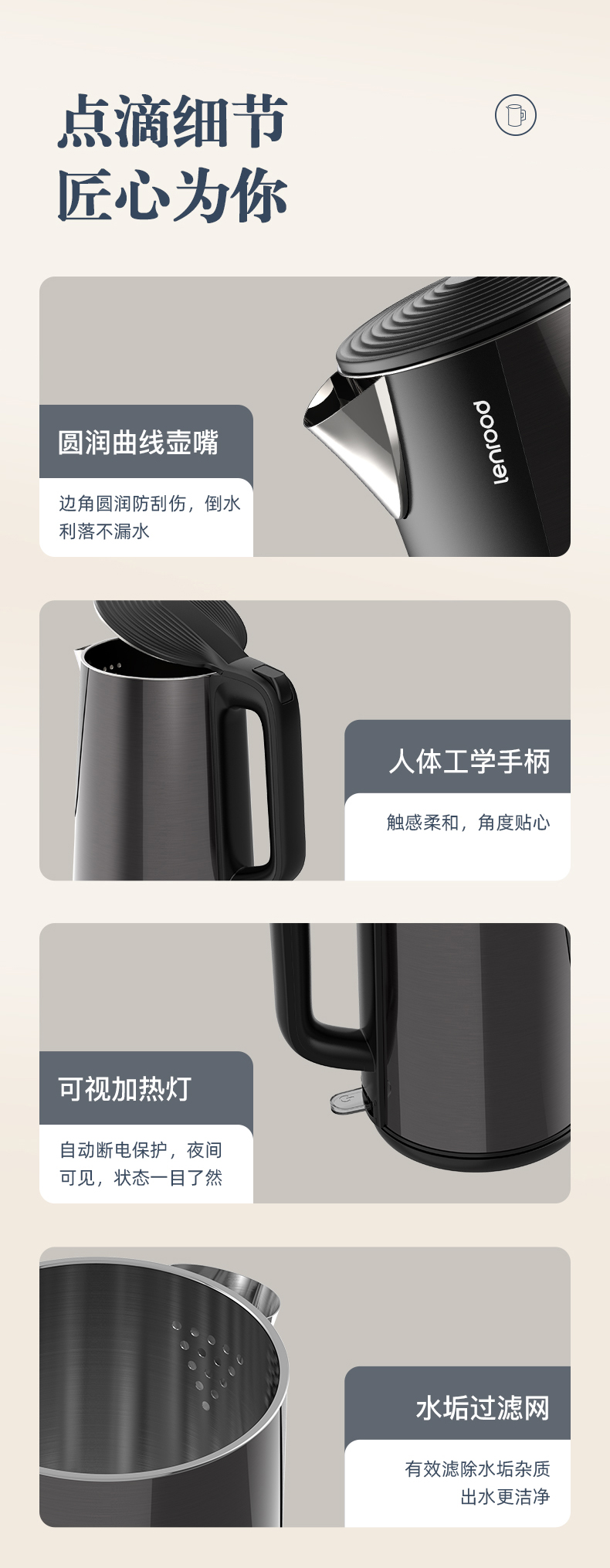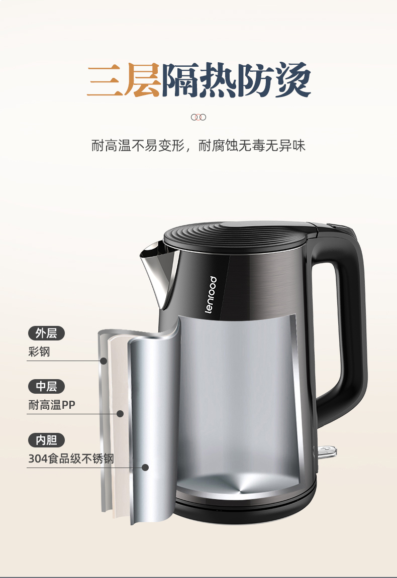 LENROOD/邻鹿1.7升电热水壶-黑色LRW5811