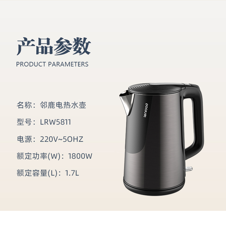 商品名称:LENROOD/邻鹿1.7升电热水壶-黑色LRW5811