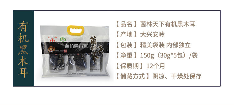 商品名称:天锦菌林天下有机黑木耳150g*2袋
