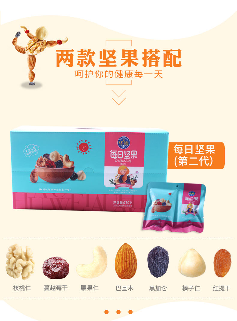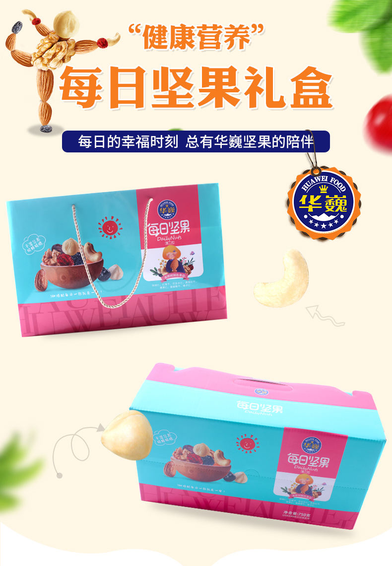 商品名称:HUAWEI FOOD/华巍每日坚果第二代干湿分离蓝色礼盒750g