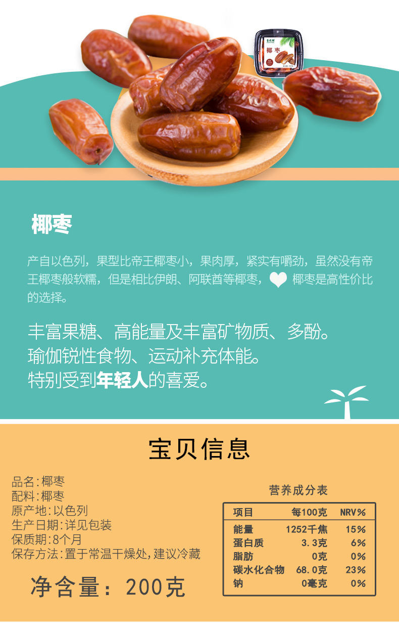 商品名称:菩提树椰枣200g*2盒