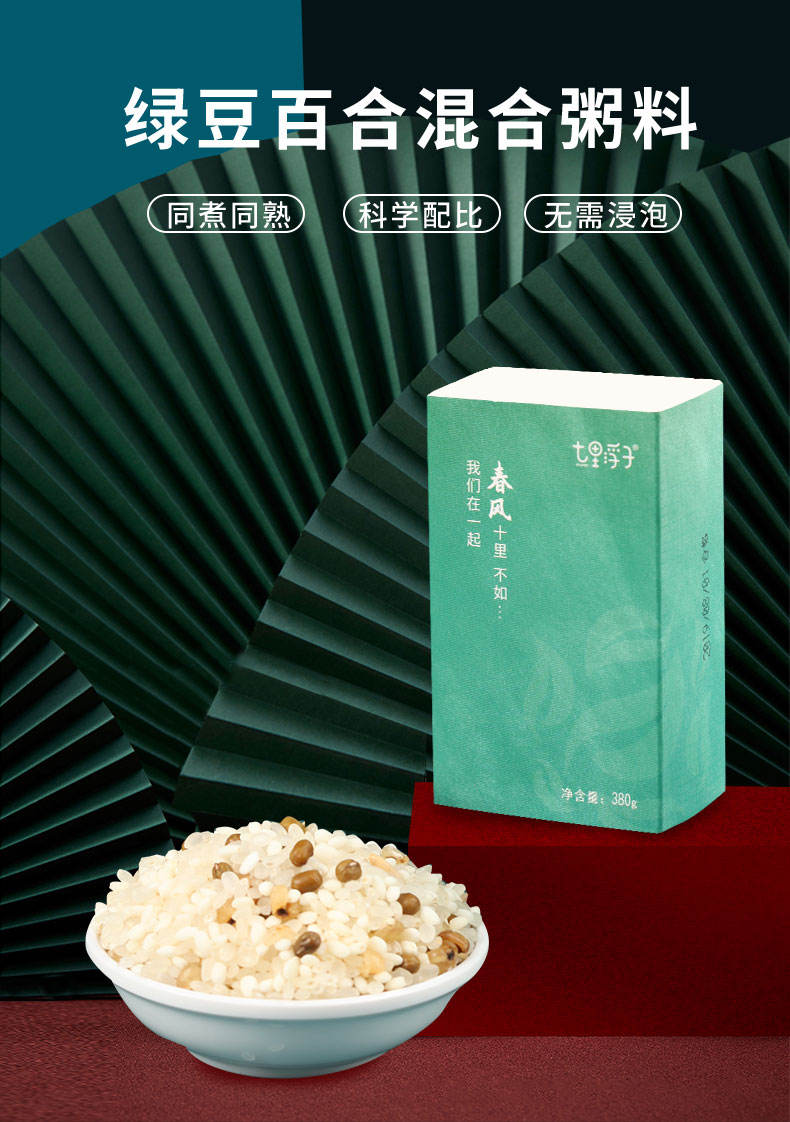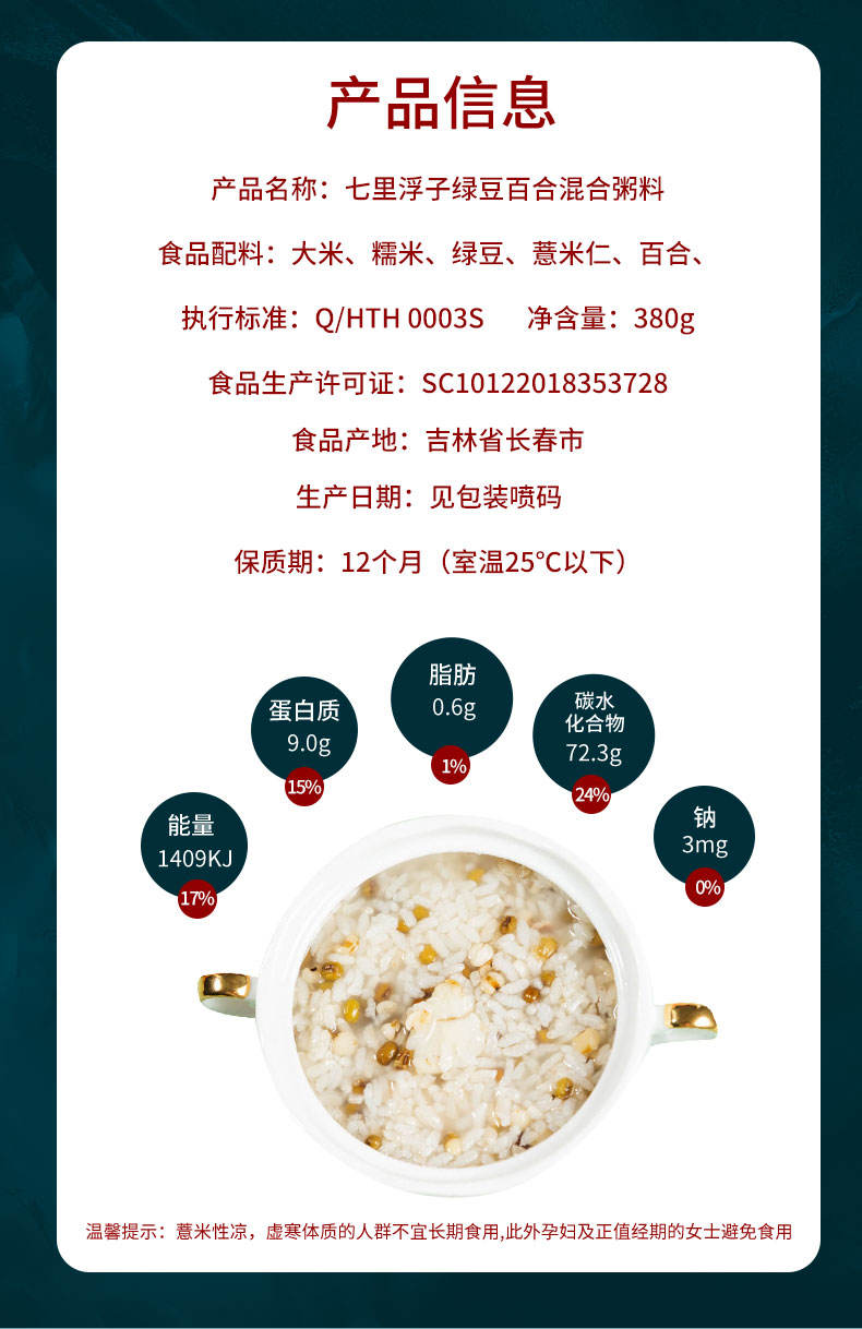 商品名称:七里浮子绿豆百合混合粥料380g*3盒