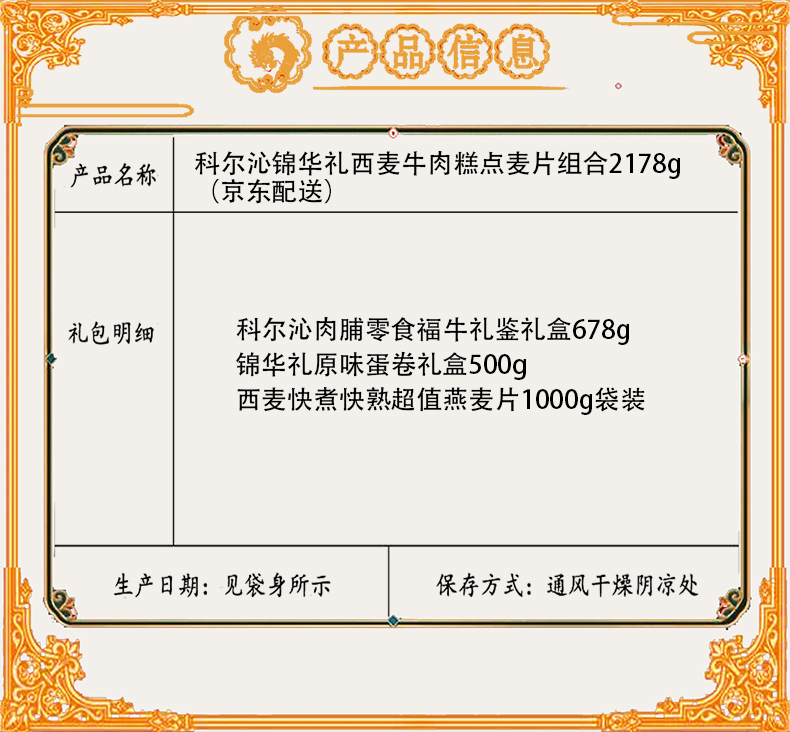 商品名称:【京东配送】科尔沁锦华礼西麦牛肉糕点麦片组合2178g
