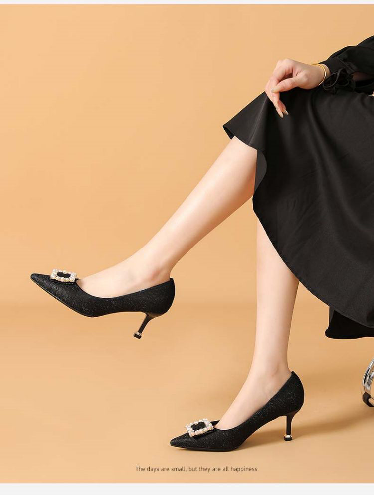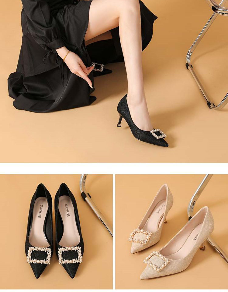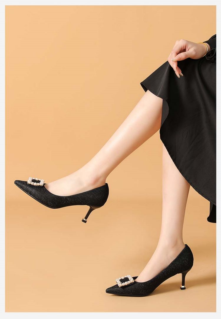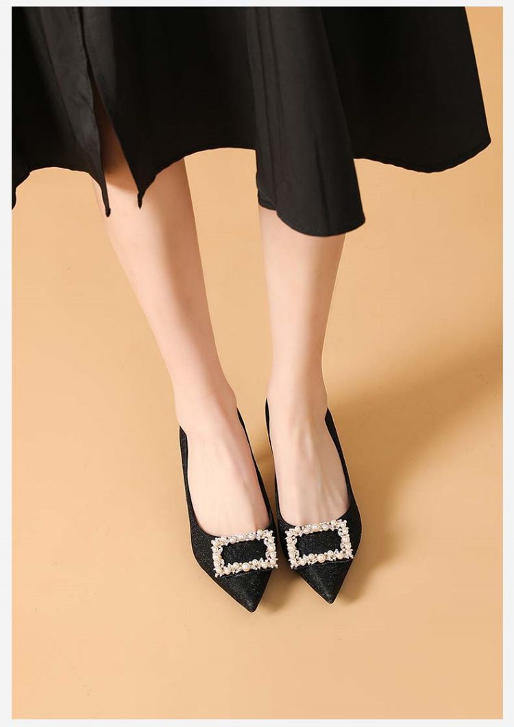 商品名称:【热卖爆款】夏季女单鞋细闪方扣珍珠潮流复古时尚高跟鞋通勤鞋 617367