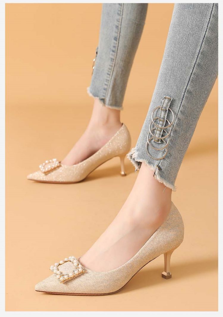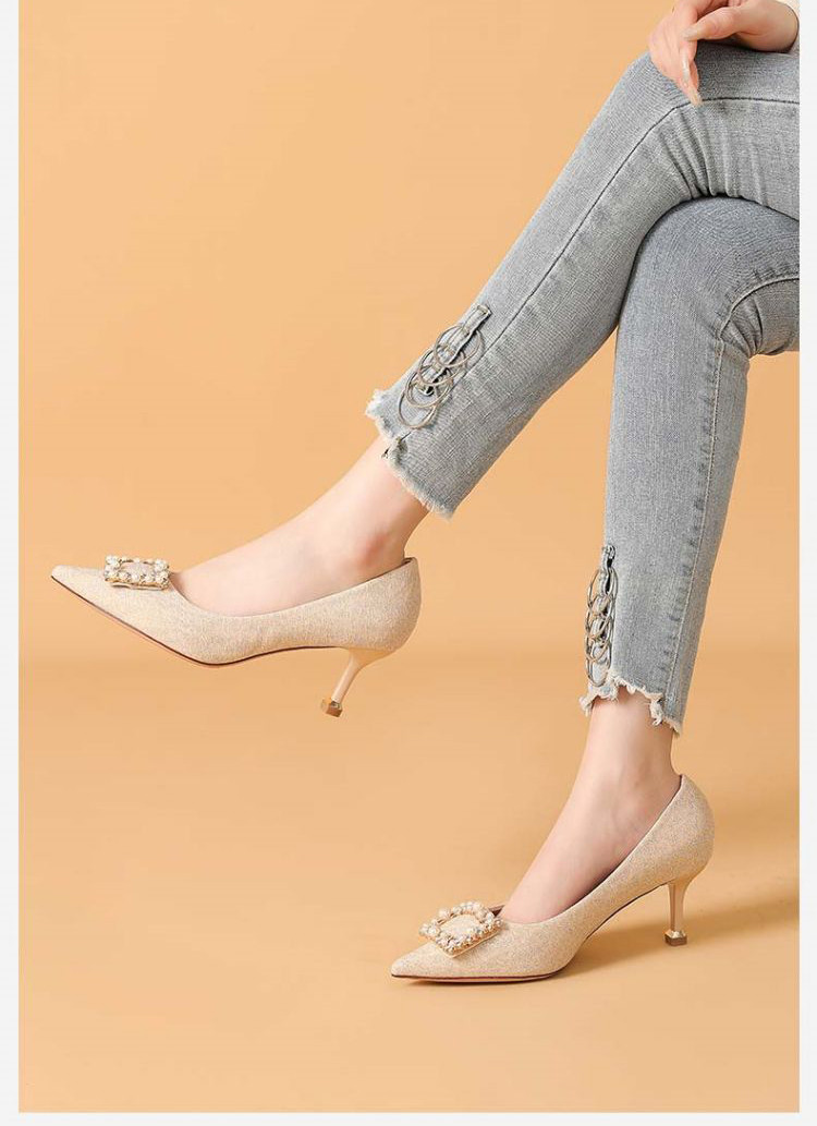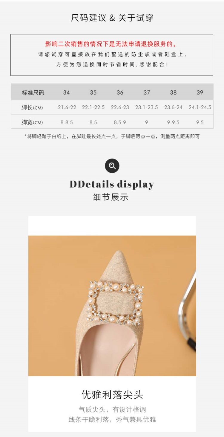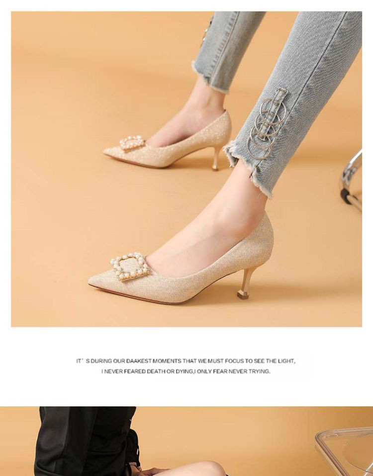 商品名称:【热卖爆款】夏季女单鞋细闪方扣珍珠潮流复古时尚高跟鞋通勤鞋 617367