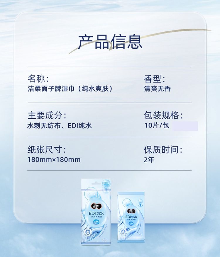 商品名称:C&S/洁柔面子EDI纯水湿巾独立装10片*30包