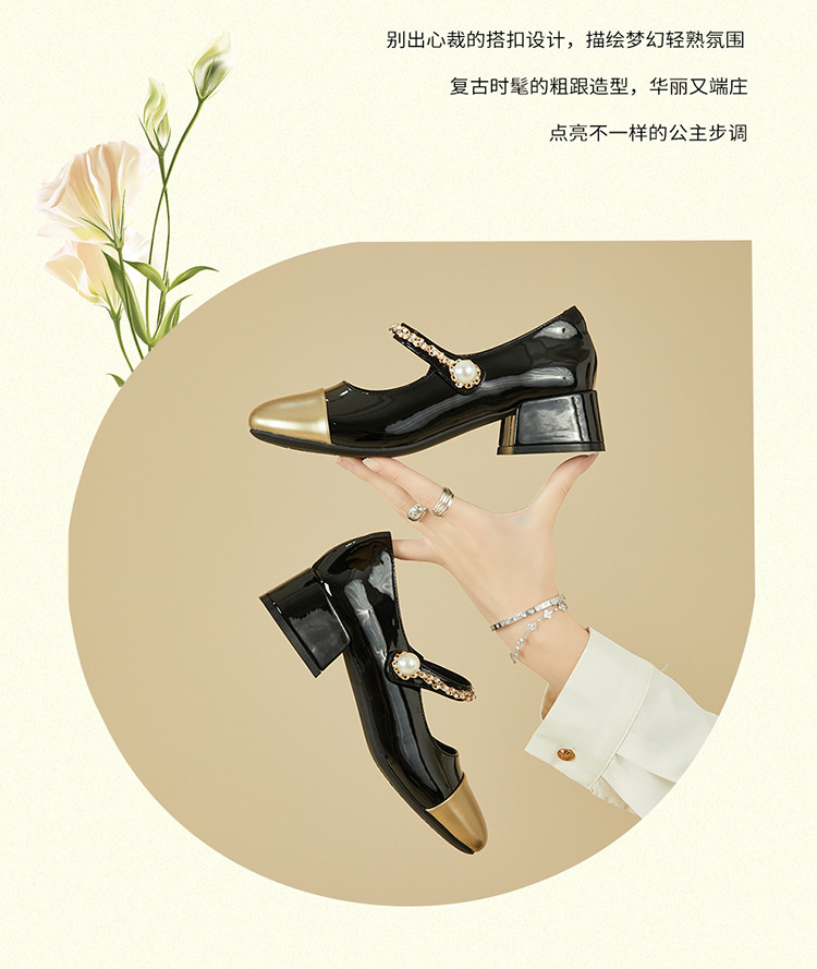 商品名称:【潮流拼色】夏女单鞋玛丽珍鞋透气复古时尚通勤鞋婚鞋汉服鞋女鞋 788439