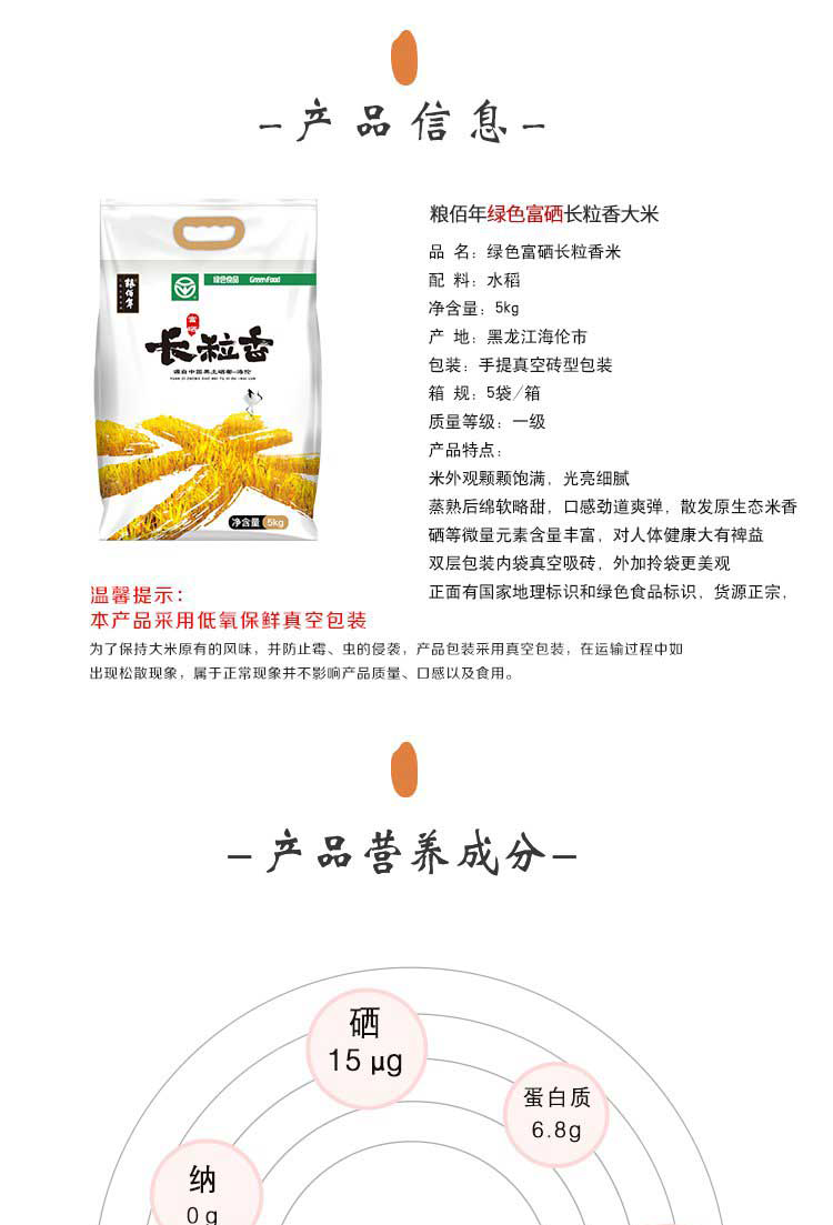 商品名称:粮佰年绿色富硒长粒香大米5kg