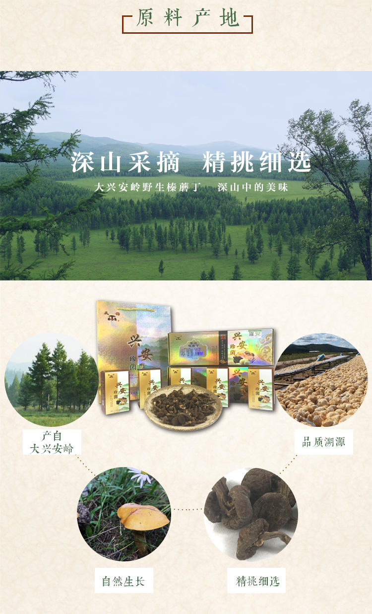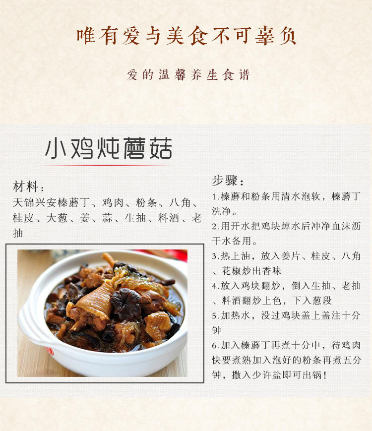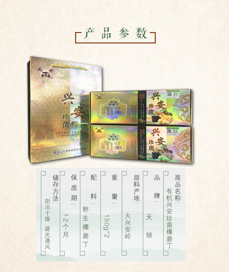 产品规格:天锦兴安珍菌手选榛蘑丁礼盒150g*2盒