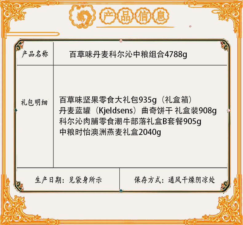 商品名称:【京东配送】百草味丹麦科尔沁中粮坚果糕点牛肉麦片组合4788g