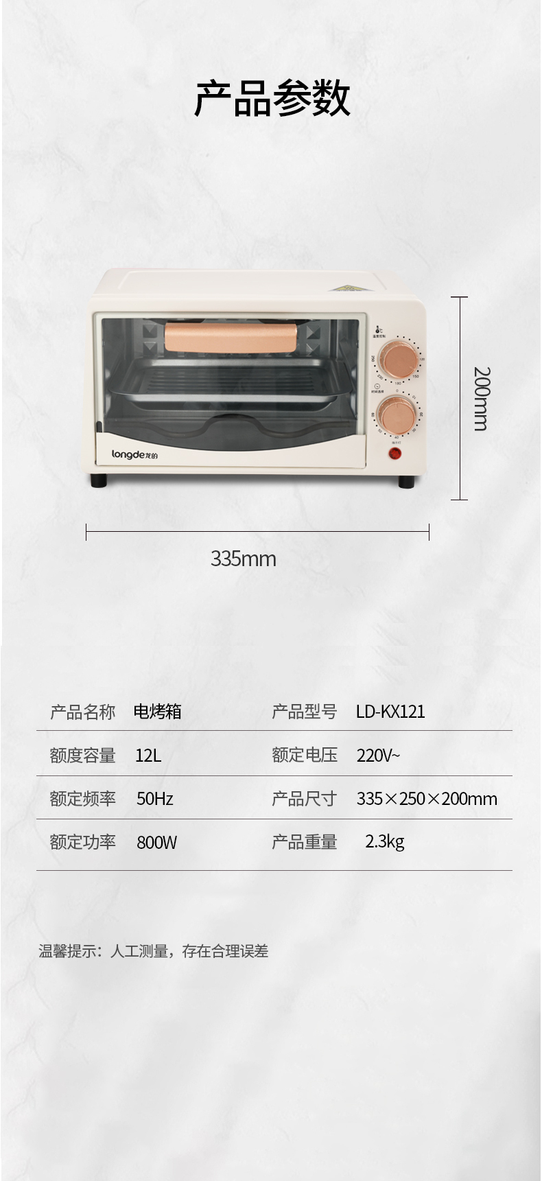 商品名称:Longde/龙的12升电烤箱LD-KX121