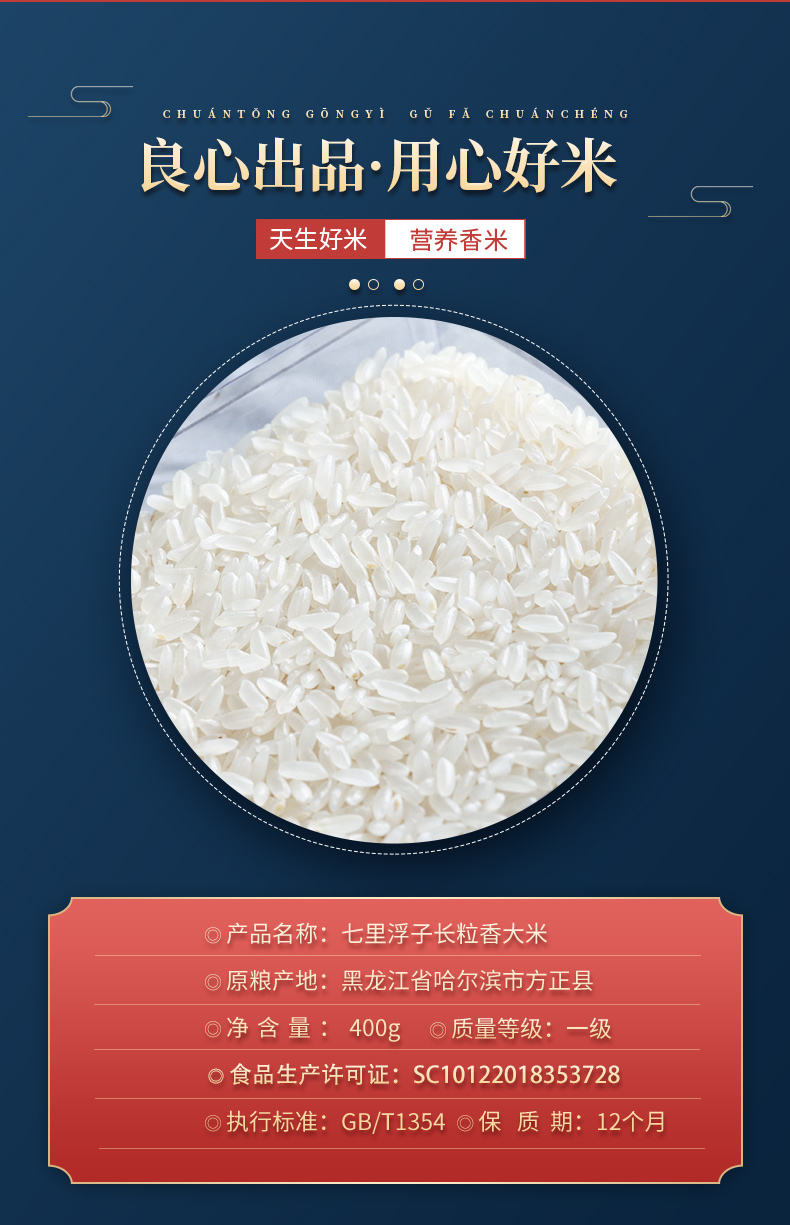 商品名称:七里浮子长粒香大米400g*4盒