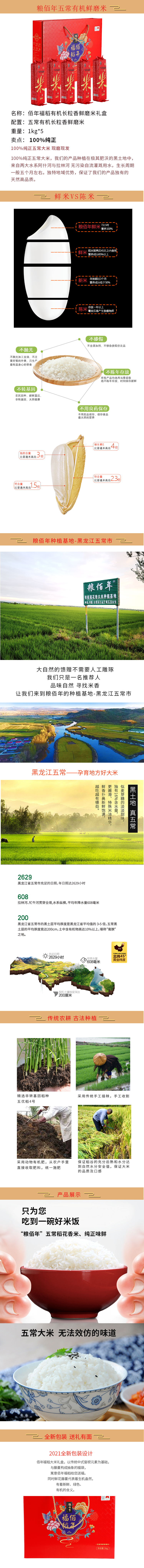 商品名称:(WS)粮佰年佰年褔稻有机长粒香鲜磨米礼盒5000g