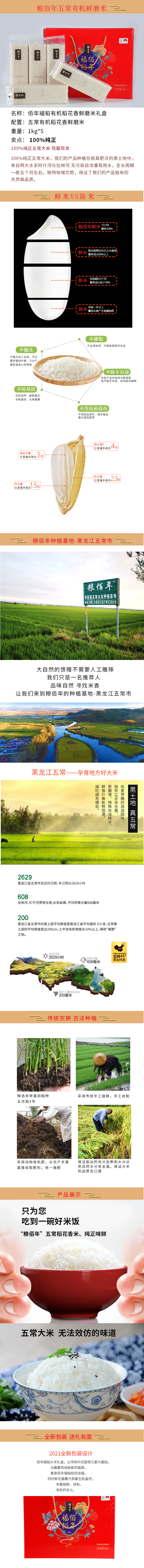 商品名称:粮佰年佰年福稻有机稻花香鲜磨米礼盒5000g