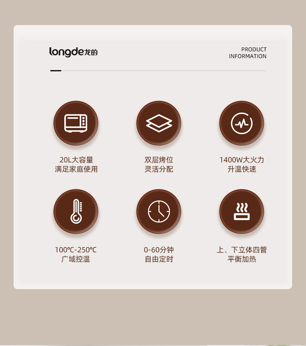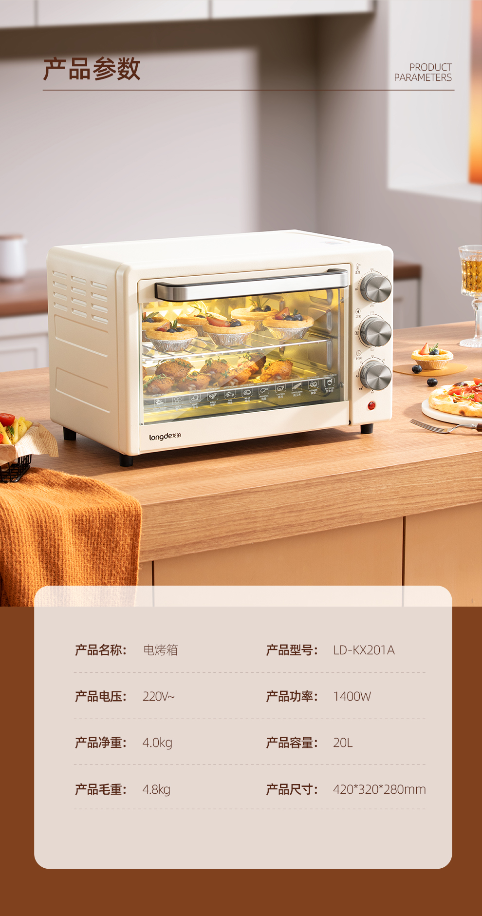 商品名称:Longde/龙的20升多功能电烤箱LD-KX201A